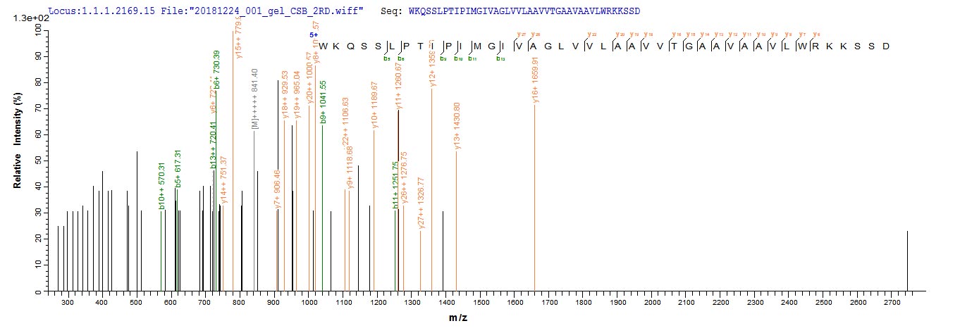 Based on the SEQUEST from database of E.coli host and target protein, the LC-MS/MS Analysis result of CSB-EP010509HU could indicate that this peptide derived from E.coli-expressed Homo sapiens (Human) HLA-G.