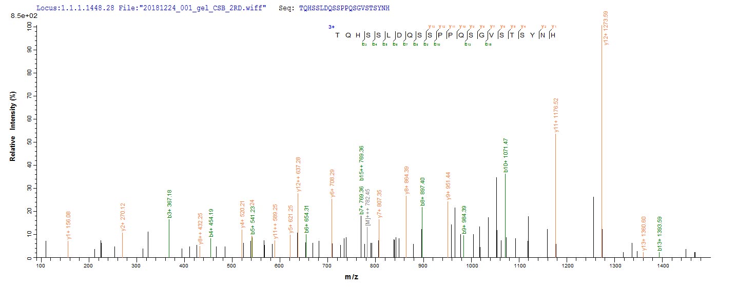 Based on the SEQUEST from database of E.coli host and target protein, the LC-MS/MS Analysis result of CSB-EP010240HU could indicate that this peptide derived from E.coli-expressed Homo sapiens (Human) HDAC4.