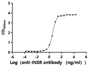 Measured by its binding ability in a functional ELISA.Immobilized Human INSR at 2 μg/ml can bind Anti-INSR recombinant antibody (CSB-RA011753MA1HU).The EC50 is 3.216-3.830 ng/mL. Biological Activity Assay