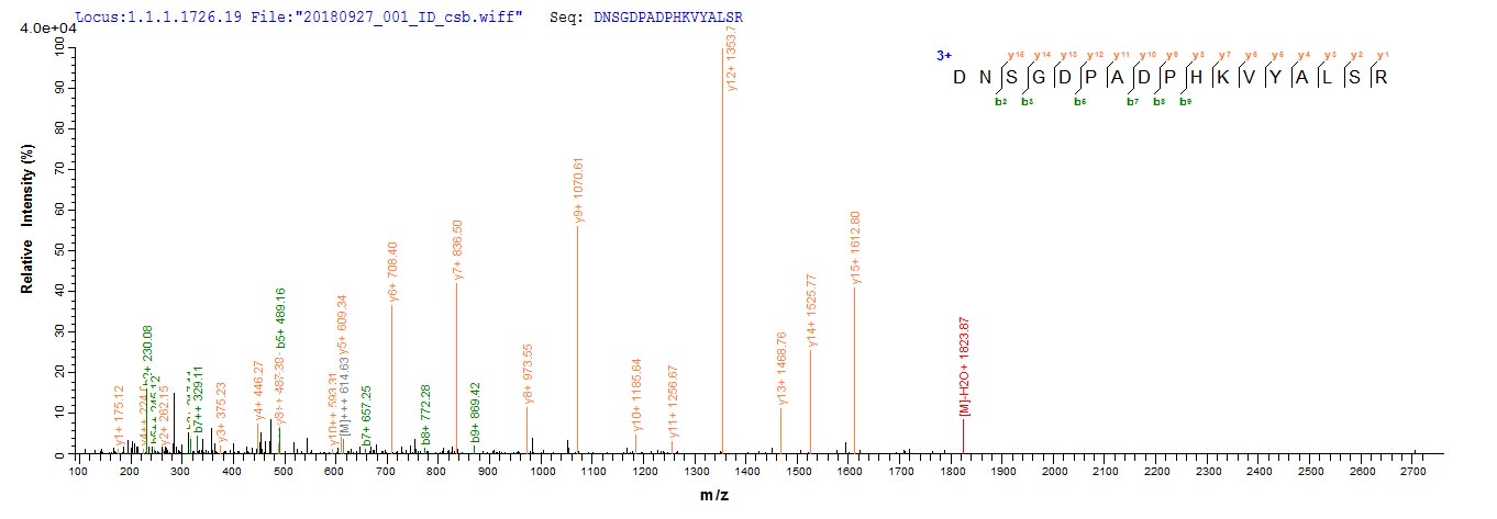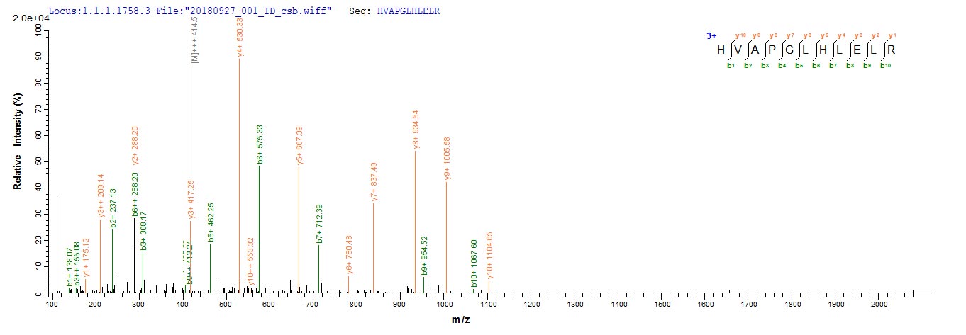 Based on the SEQUEST from database of E.coli host and target protein, the LC-MS/MS Analysis result of CSB-EP011822HU could indicate that this peptide derived from E.coli-expressed Homo sapiens (Human) IRF7.