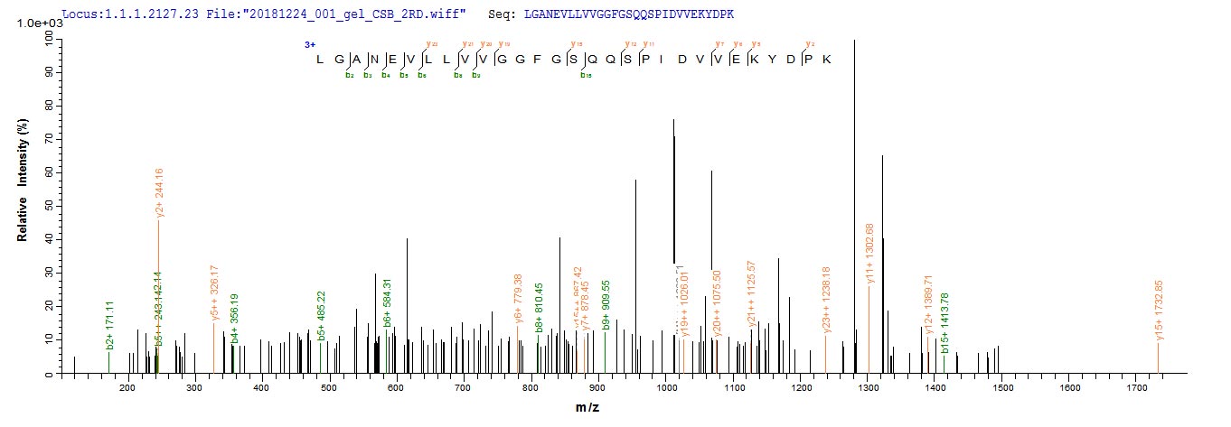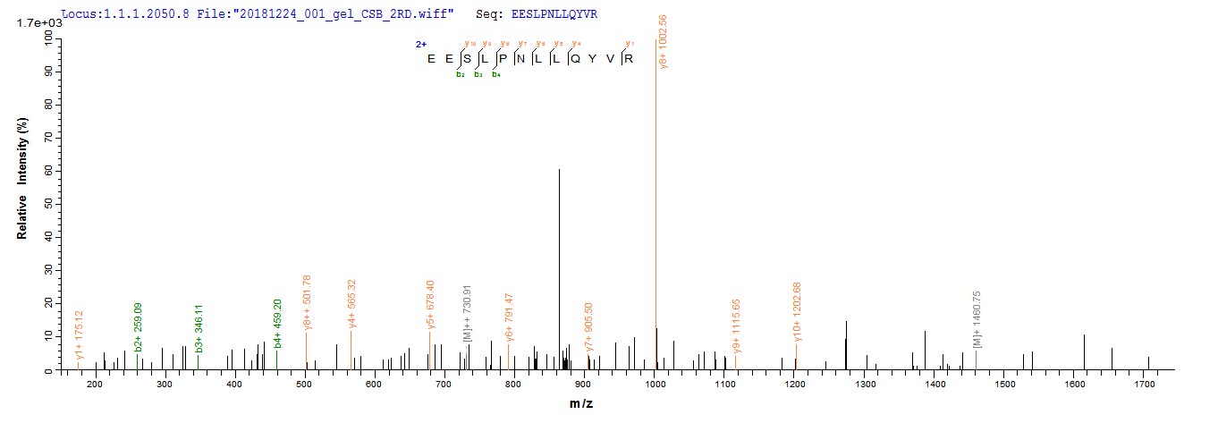 Based on the SEQUEST from database of E.coli host and target protein, the LC-MS/MS Analysis result of CSB-EP700650HU could indicate that this peptide derived from E.coli-expressed Homo sapiens (Human) KLHL12.