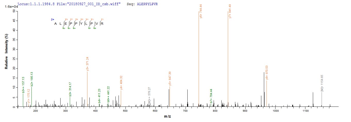 Based on the SEQUEST from database of E.coli host and target protein, the LC-MS/MS Analysis result of CSB-EP013040HU could indicate that this peptide derived from E.coli-expressed Homo sapiens (Human) LOXL1.