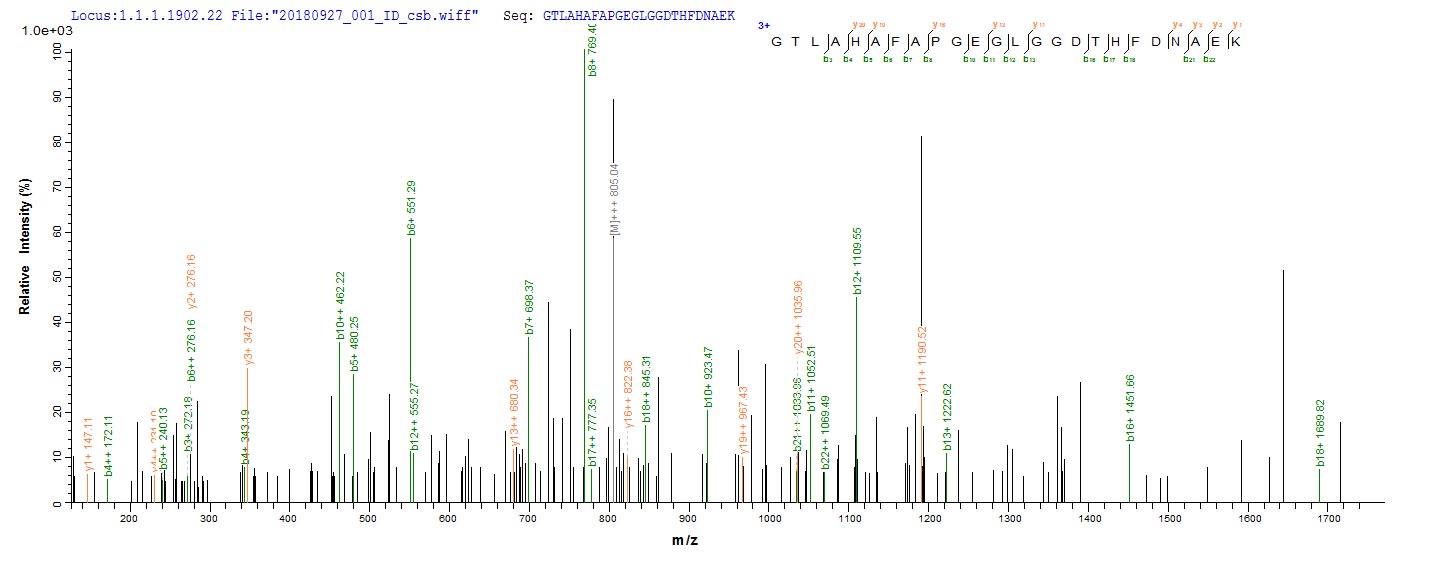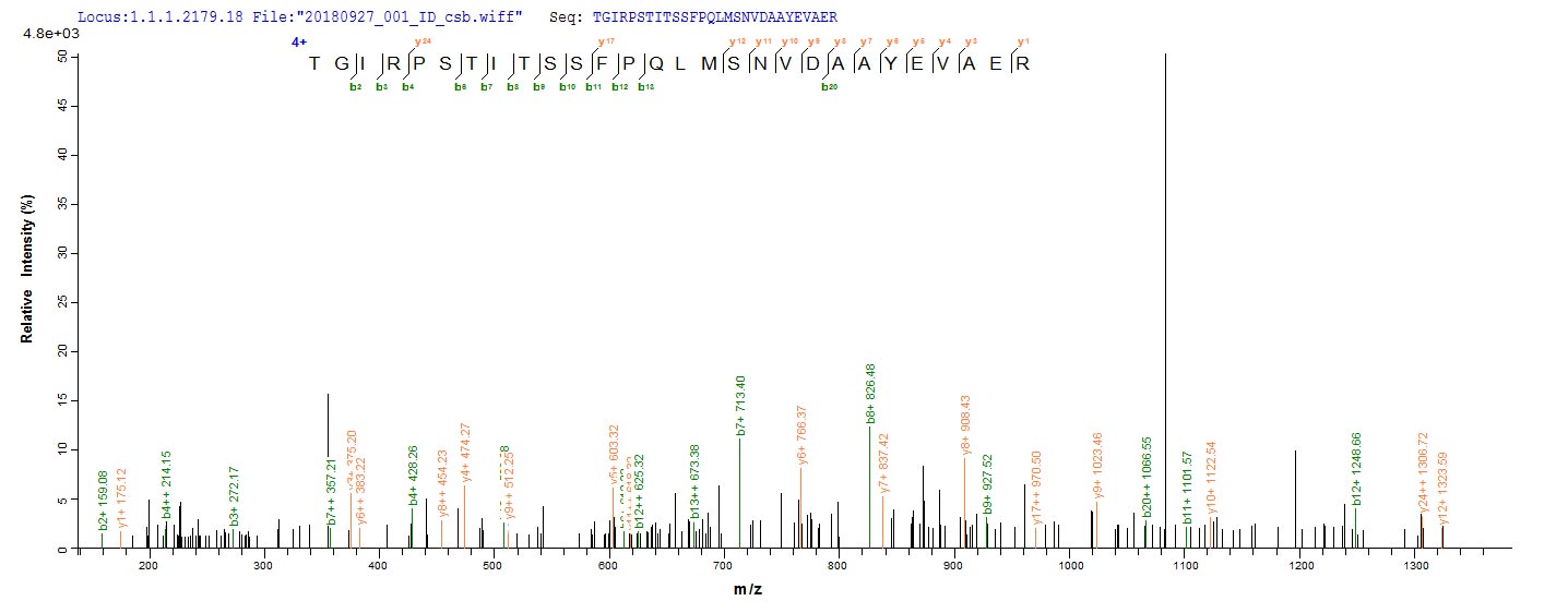 Based on the SEQUEST from database of E.coli host and target protein, the LC-MS/MS Analysis result of CSB-EP014667HU could indicate that this peptide derived from E.coli-expressed Homo sapiens (Human) MMP20.