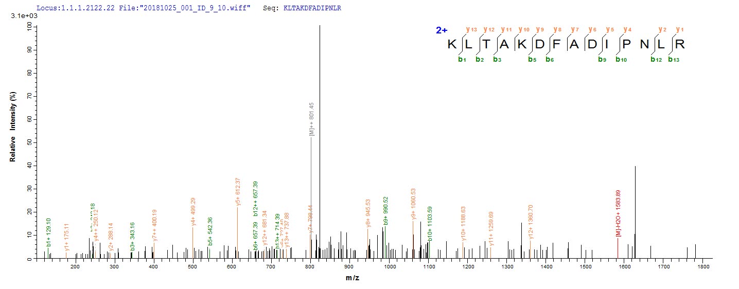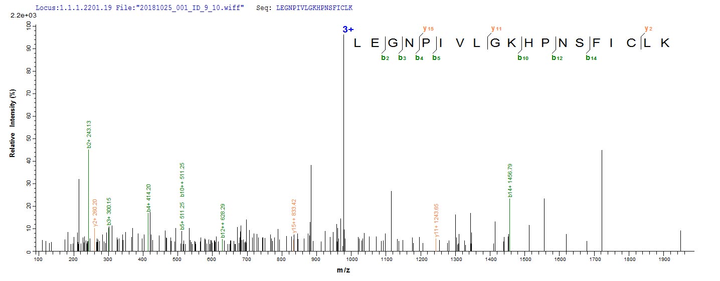 Based on the SEQUEST from database of E.coli host and target protein, the LC-MS/MS Analysis result of CSB-EP016314HU could indicate that this peptide derived from E.coli-expressed Homo sapiens (Human) OGN.