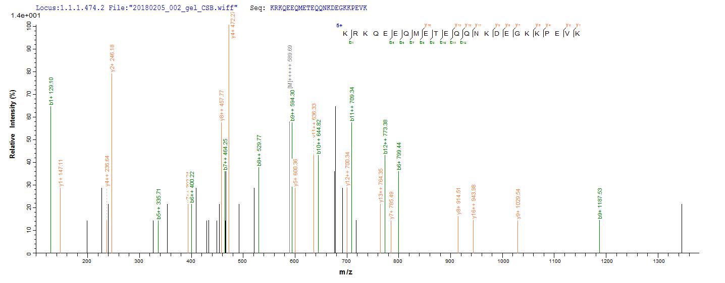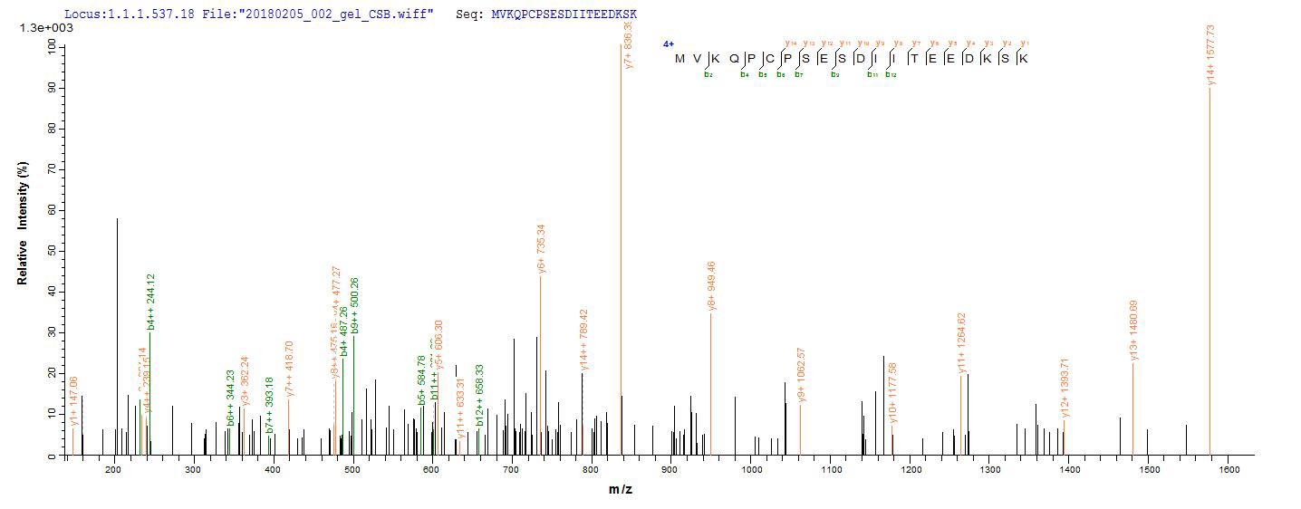 Based on the SEQUEST from database of E.coli host and target protein, the LC-MS/MS Analysis result of CSB-EP018860HU could indicate that this peptide derived from E.coli-expressed Homo sapiens (Human) PSIP1.