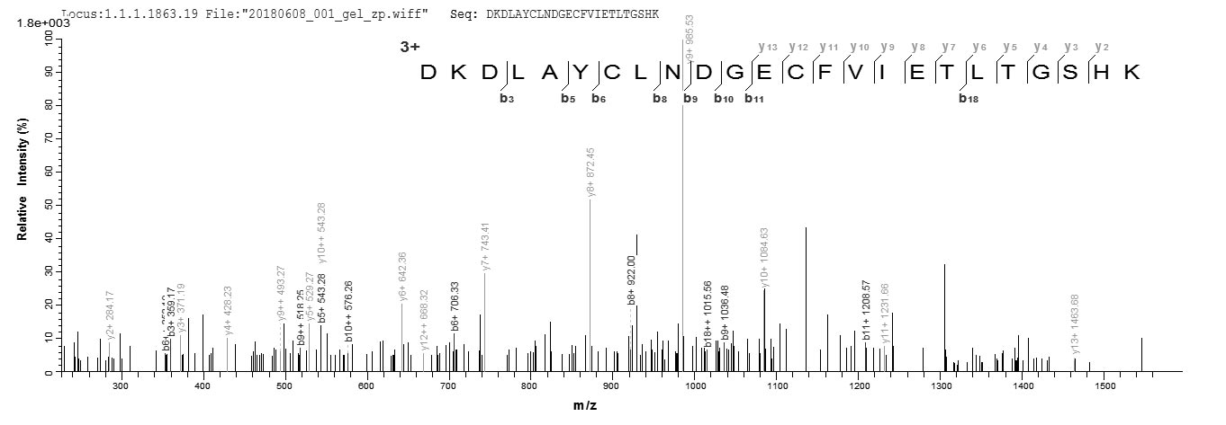 Based on the SEQUEST from database of E.coli host and target protein, the LC-MS/MS Analysis result of CSB-EP016079HU could indicate that this peptide derived from E.coli-expressed Homo sapiens (Human) NRG3.