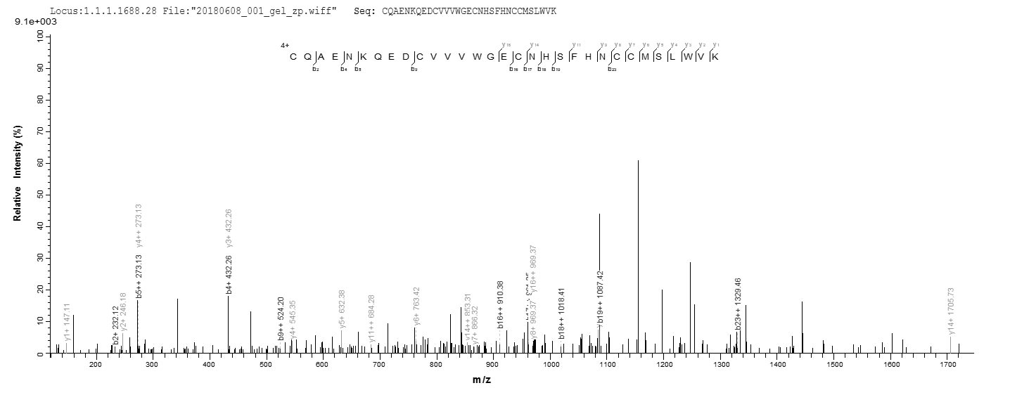 Based on the SEQUEST from database of E.coli host and target protein, the LC-MS/MS Analysis result of CSB-EP019897HU could indicate that this peptide derived from E.coli-expressed Homo sapiens (Human) RNF7.