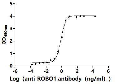 Measured by its binding ability in a functional ELISA.Immobilized Human ROBO1 at 2 μg/ml can bind Anti-ROBO1 recombinant antibody (CSB-RA896760MA1HU).The EC50 is 0.7363-0.9105 ng/mL. Biological Activity Assay -