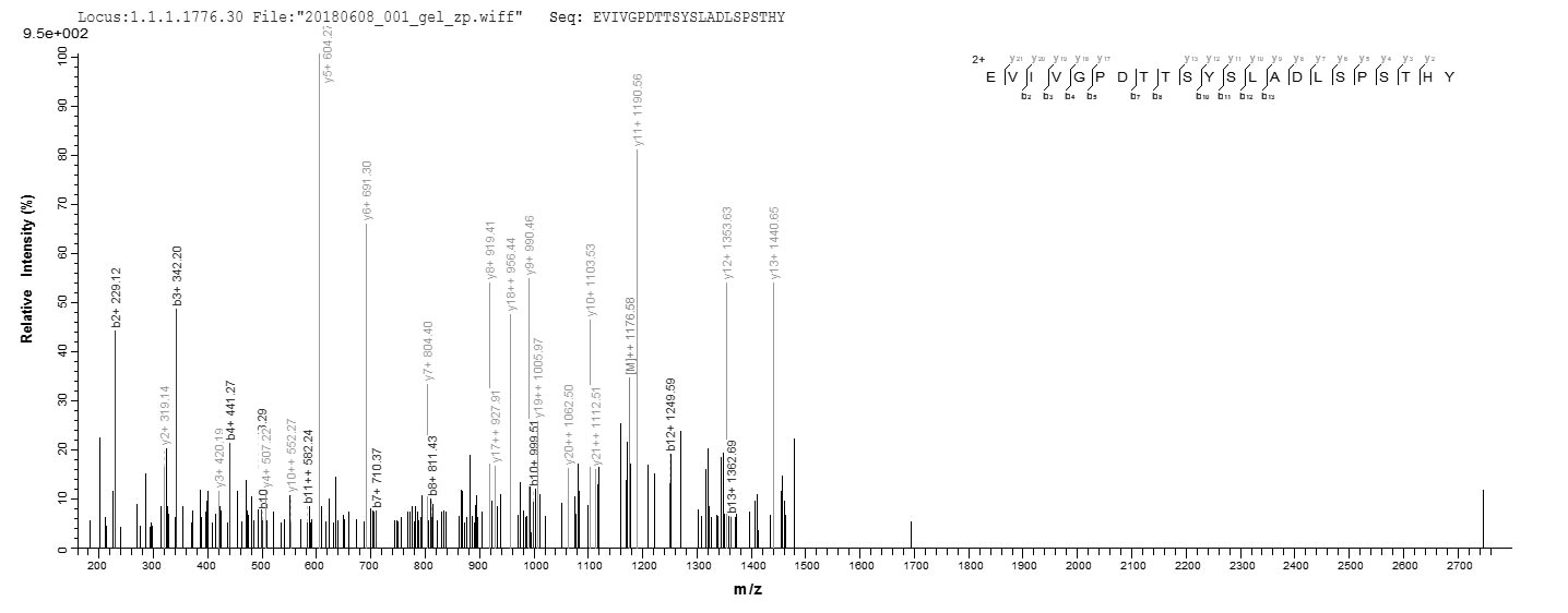 Based on the SEQUEST from database of E.coli host and target protein, the LC-MS/MS Analysis result of CSB-RP115094h(C) could indicate that this peptide derived from E.coli-expressed Homo sapiens (Human) TNC.