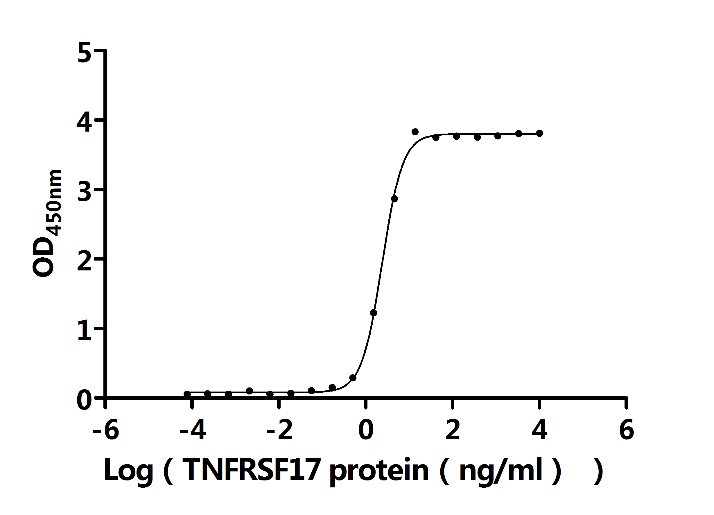 Measured by its binding ability in a functional ELISA. Immobilized Anti-TNFRSF17 recombinant antibody (CSB-RA023974MA3HU) at 2 μg/ml can bind Human TNFRSF17 protein. The EC50 is 1.745-1.901 ng/mL. Biological Activity Assay -