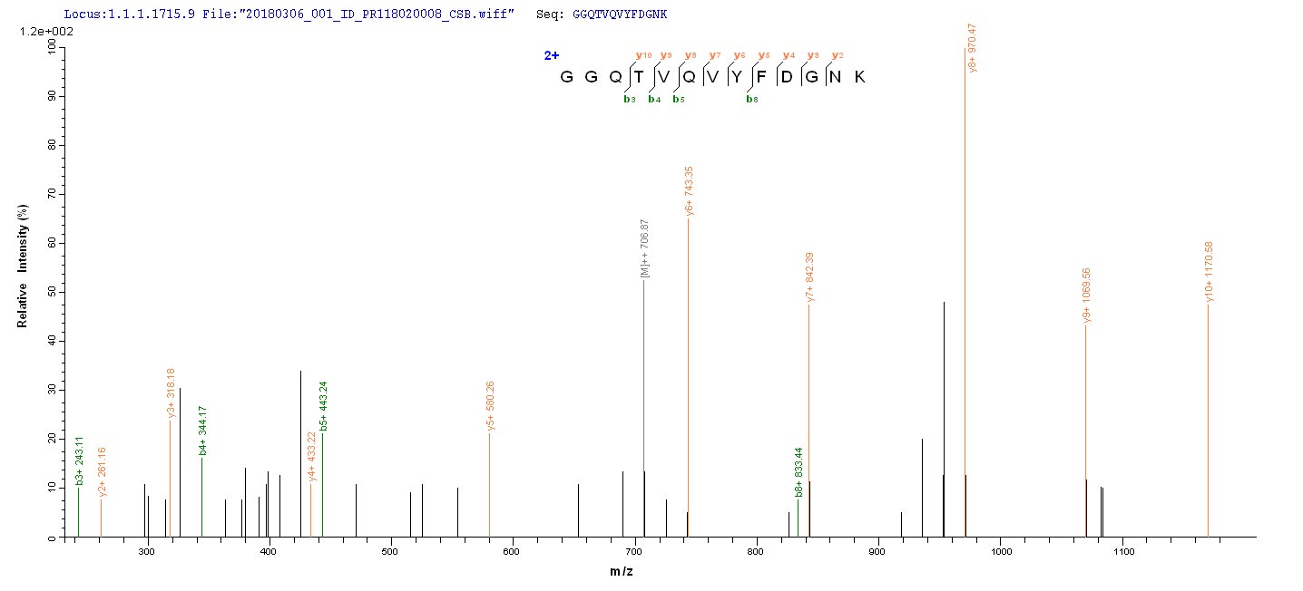 Based on the SEQUEST from database of Yeast host and target protein, the LC-MS/MS Analysis result of CSB-YP361949HMN could indicate that this peptide derived from Yeast-expressed Human papillomavirus type 18 E2.