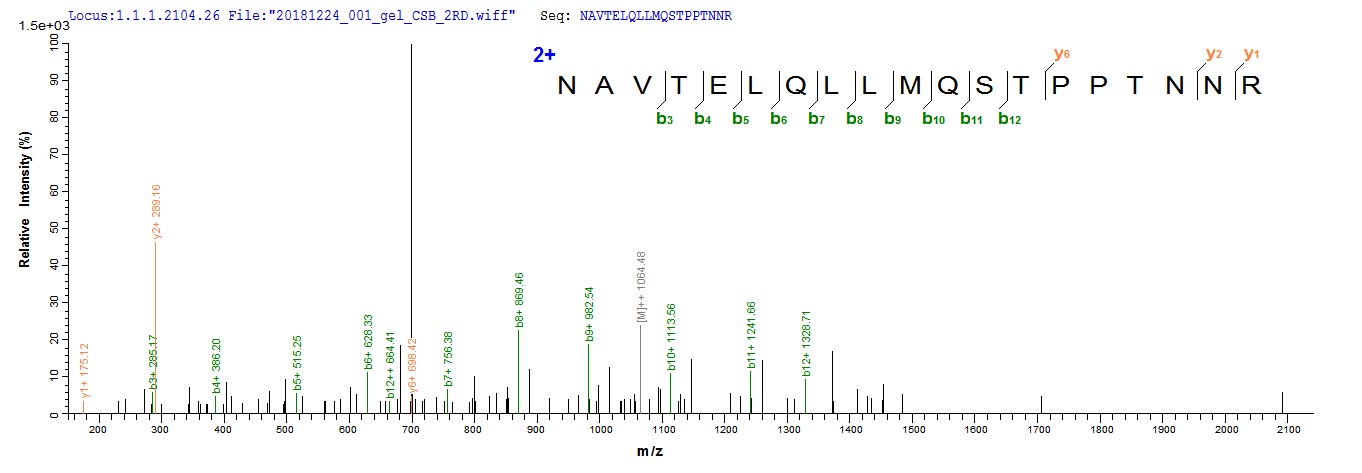 Based on the SEQUEST from database of E.coli host and target protein, the LC-MS/MS Analysis result of CSB-EP356041HPO could indicate that this peptide derived from E.coli-expressed Human respiratory syncytial virus A (strain A2) F.