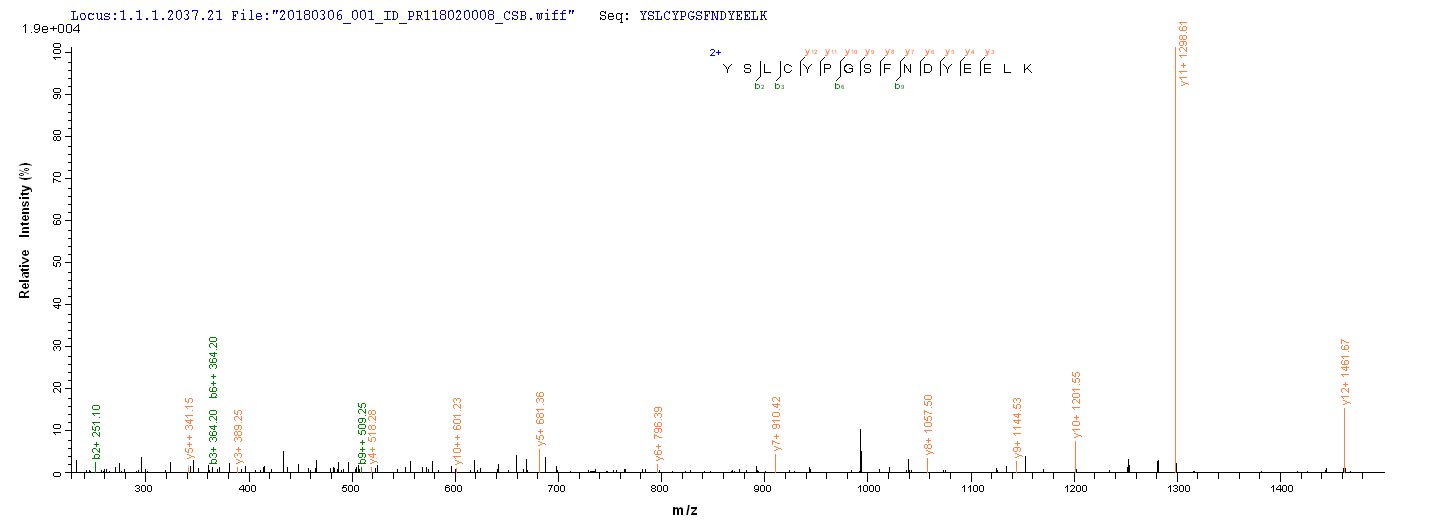 Based on the SEQUEST from database of E.coli host and target protein, the LC-MS/MS Analysis result of CSB-EP714917IEX could indicate that this peptide derived from E.coli-expressed Influenza A virus (strain A/Korea/426/1968 H2N2) HA.