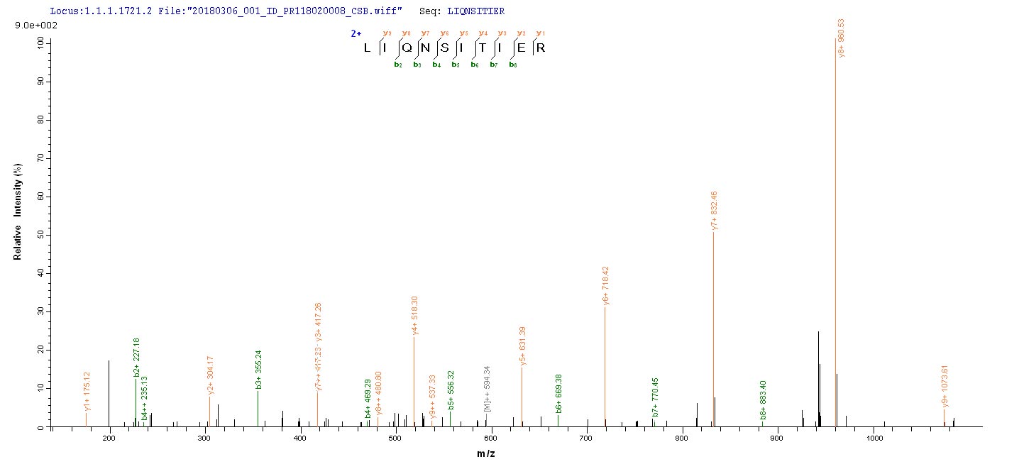 Based on the SEQUEST from database of E.coli host and target protein, the LC-MS/MS Analysis result of CSB-EP326264IFQ could indicate that this peptide derived from E.coli-expressed Influenza A virus (strain A/New Jersey/8/1976 H1N1) NP.