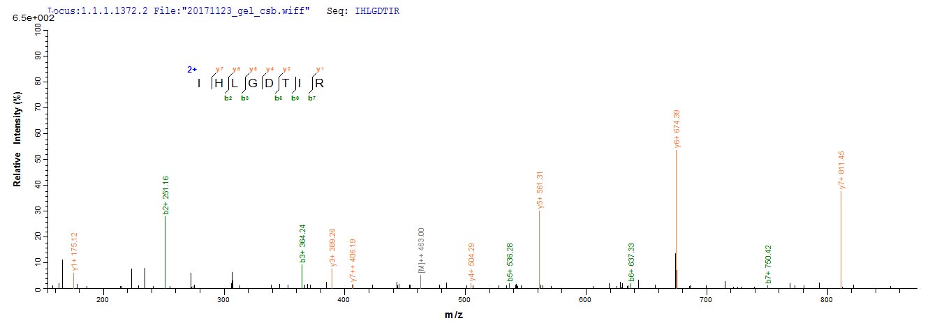 Based on the SEQUEST from database of E.coli host and target protein, the LC-MS/MS Analysis result of CSB-EP2530LOE could indicate that this peptide derived from E.coli-expressed Leishmania donovani (strain BPK282A1) LDBPK_361420.