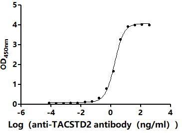 Measured by its binding ability in a functional ELISA.Immobilized Macaca fascicularis TACSTD2 at 2 μg/ml can bind Anti-TACSTD2 recombinant antibody(CSB-RA023072MA1HU) The EC50 is 1.720-2.009 ng/mL. Biological Activity Assay -