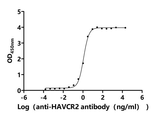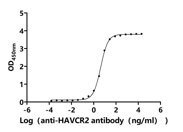 Measured by its binding ability in a functional ELISA.Immobilized Macaca fascicularis HAVCR2 at 2 μg/ml can bind Anti-HAVCR2 recombinant antibody (CSB-RA010145MA2HU). The EC50 is 4.000-4.556 ng/mL. Biological Activity Assay -