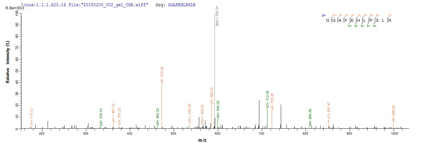 Based on the SEQUEST from database of Yeast host and target protein, the LC-MS/MS Analysis result of CSB-YP024093MOV could indicate that this peptide derived from Yeast-expressed Macaca fascicularis (Crab-eating macaque) (Cynomolgus monkey) TPBG.