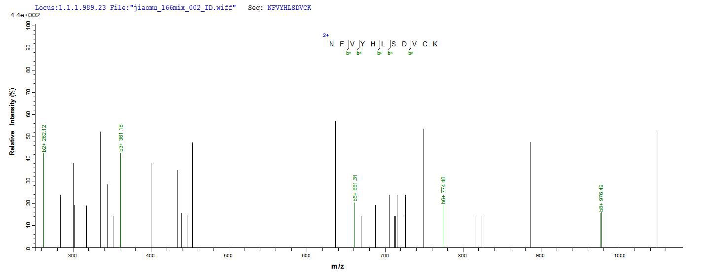 Based on the SEQUEST from database of Yeast host and target protein, the LC-MS/MS Analysis result of CSB-YP011337MO could indicate that this peptide derived from Yeast-expressed Mus musculus (Mouse) Jchain.