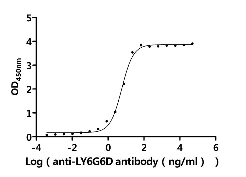 Measured by its binding ability in a functional ELISA. Immobilized Mouse Ly6g6d at 2 μg/ml can bind Anti-Ly6g6d recombinant antibody (CSB-RA013246MA4HU). The EC50 is 5.260-6.497 ng/mL. Biological Activity Assay