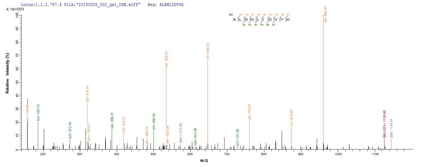 Based on the SEQUEST from database of E.coli host and target protein, the LC-MS/MS Analysis result of CSB-EP020641MO could indicate that this peptide derived from E.coli-expressed Mus musculus (Mouse) S100a8.