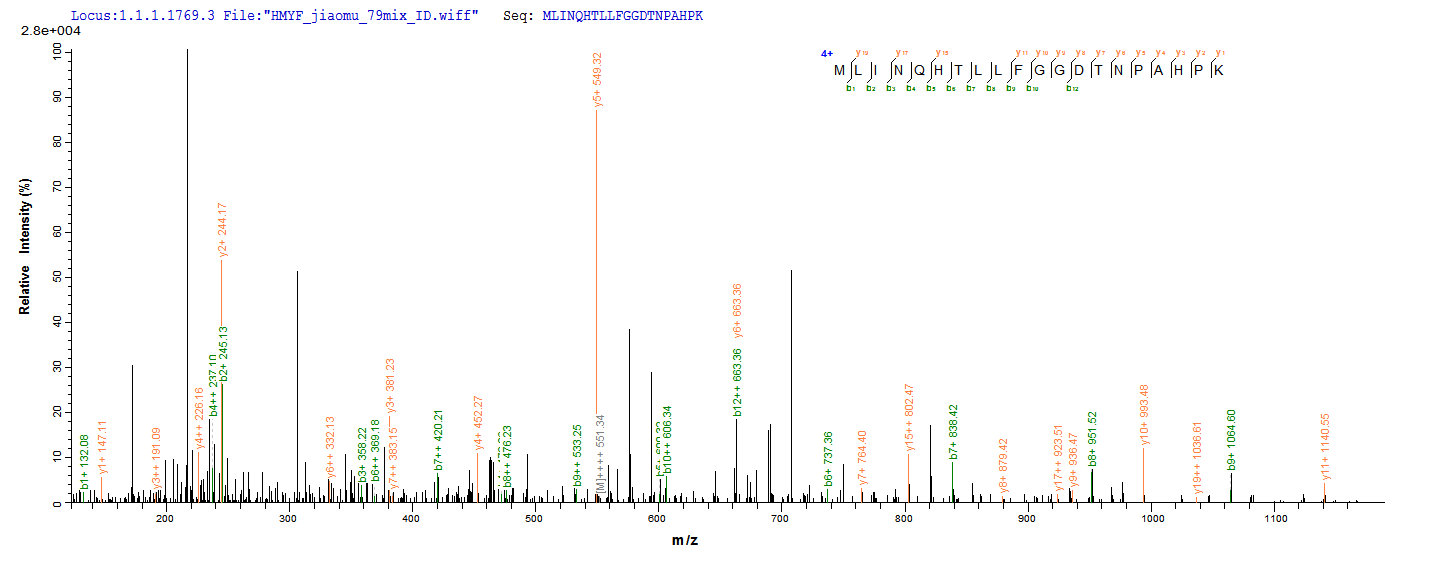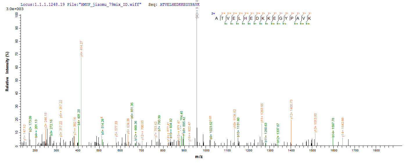Based on the SEQUEST from database of E.coli host and target protein, the LC-MS/MS Analysis result of CSB-EP852852MO could indicate that this peptide derived from E.coli-expressed Mus musculus (Mouse) Pdk3.
