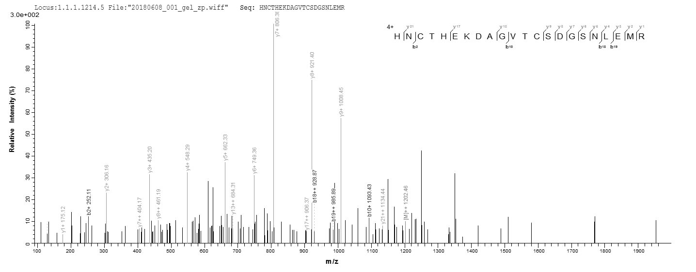 Based on the SEQUEST from database of E.coli host and target protein, the LC-MS/MS Analysis result of CSB-EP650452MO could indicate that this peptide derived from E.coli-expressed Mus musculus (Mouse) Cd163.