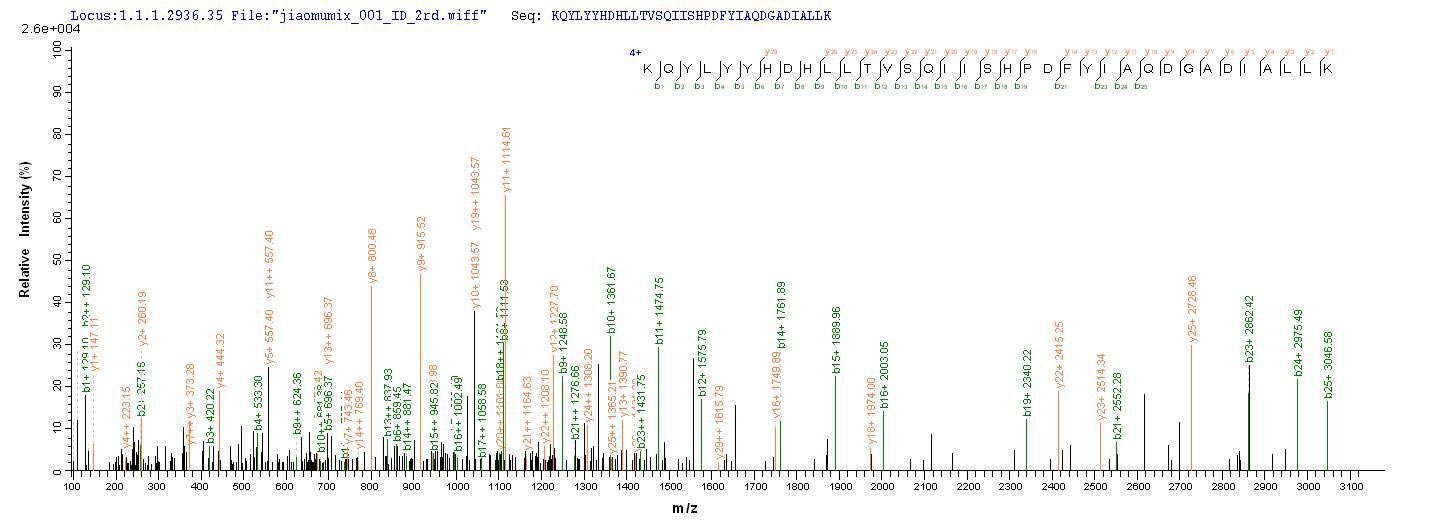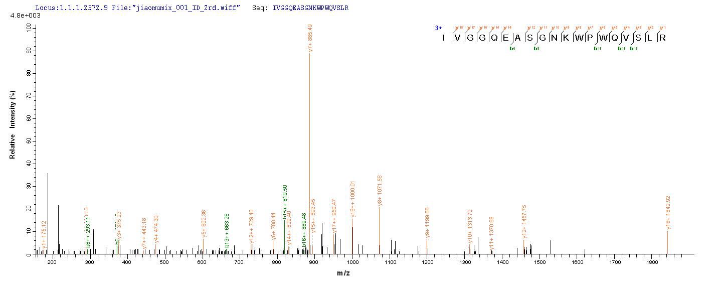 Based on the SEQUEST from database of E.coli host and target protein, the LC-MS/MS Analysis result of CSB-EP024127MO could indicate that this peptide derived from E.coli-expressed Mus musculus (Mouse) Tpsab1.
