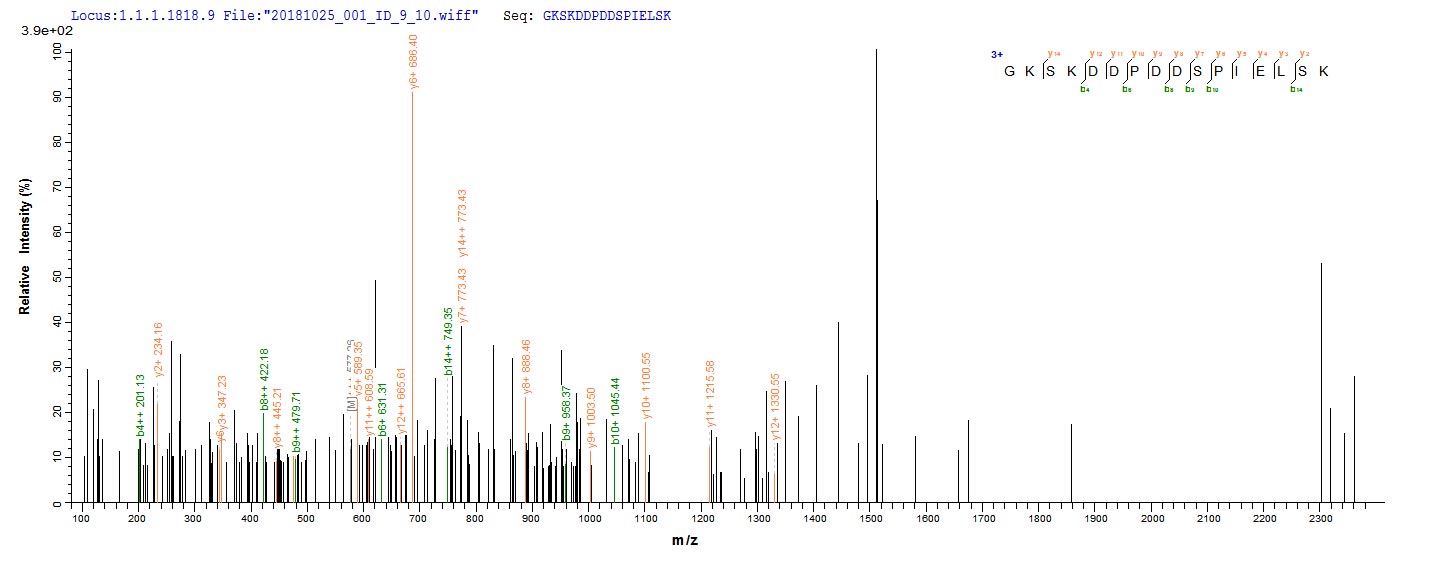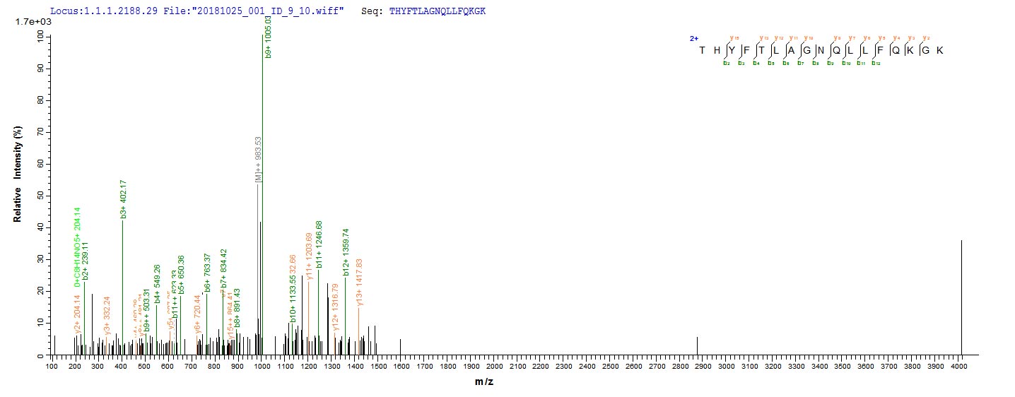 Based on the SEQUEST from database of E.coli host and target protein, the LC-MS/MS Analysis result of CSB-EP025844MO could indicate that this peptide derived from E.coli-expressed Mus musculus (Mouse) Veph1.