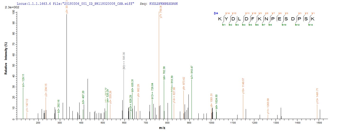 Based on the SEQUEST from database of E.coli host and target protein, the LC-MS/MS Analysis result of CSB-EP857046NGS could indicate that this peptide derived from E.coli-expressed Neosartorya fumigata (strain ATCC MYA-4609 / Af293 / CBS 101355 / FGSC A1100) (Aspergillus fumigatus) enoA.