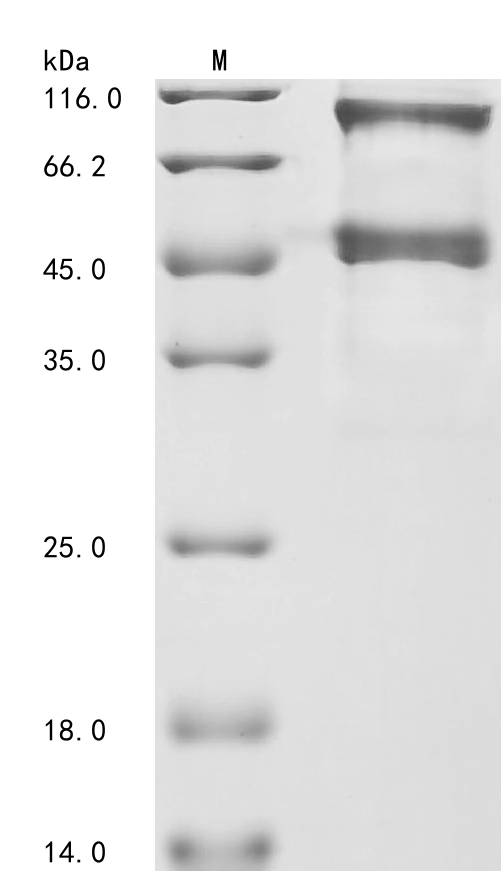 復(fù)溶:We recommend that this vial be briefly centrifuged prior to opening to bring the contents to the bottom. Please reconstitute protein in deionized sterile water to a concentration of 0.1-1.0 mg/mL.We recommend to add 5-50% of glycerol (final concentration) and aliquot for long-term storage at -20°C/-80°C. Our default final concentration of glycerol is 50%. Customers could use it as reference.
