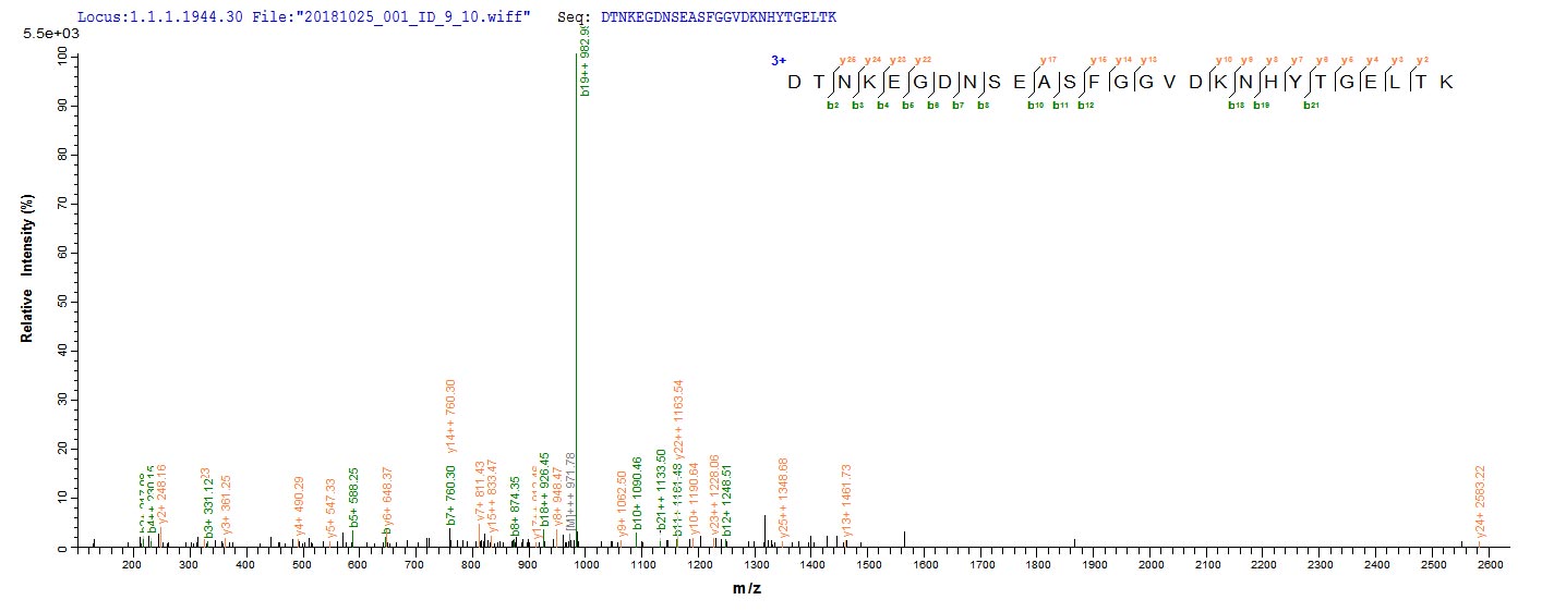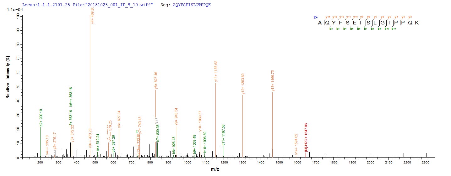 Based on the SEQUEST from database of E.coli host and target protein, the LC-MS/MS Analysis result of CSB-EP523645NGS could indicate that this peptide derived from E.coli-expressed Neosartorya fumigata (strain ATCC MYA-4609 / Af293 / CBS 101355 / FGSC A1100) (Aspergillus fumigatus) pep2.