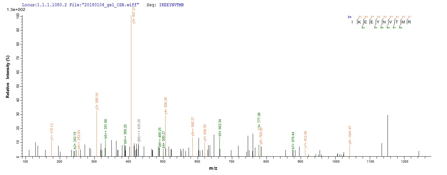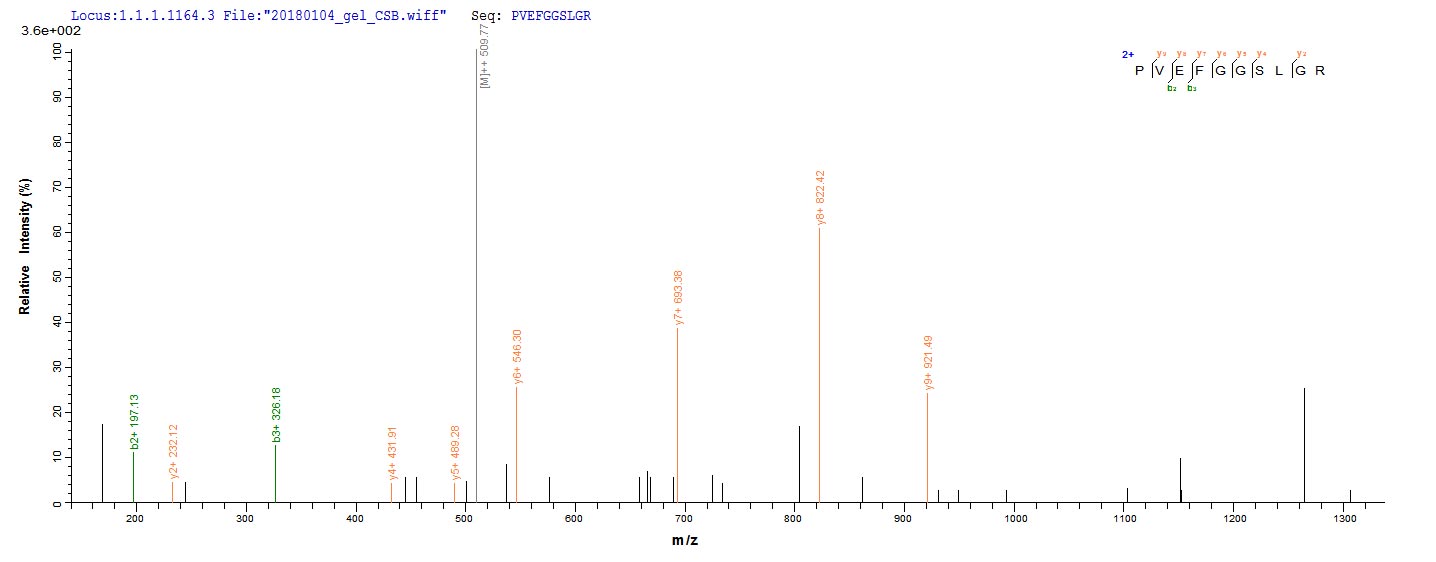 Based on the SEQUEST from database of E.coli host and target protein, the LC-MS/MS Analysis result of CSB-EP335284DUN could indicate that this peptide derived from E.coli-expressed Peptoclostridium difficile (Clostridium difficile) gluD.