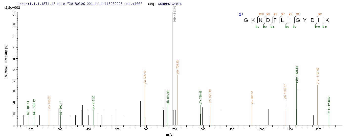 Based on the SEQUEST from database of E.coli host and target protein, the LC-MS/MS Analysis result of CSB-EP318584EZX could indicate that this peptide derived from E.coli-expressed Pseudomonas aeruginosa (strain ATCC 15692 / PAO1 / 1C / PRS 101 / LMG 12228) lasB.