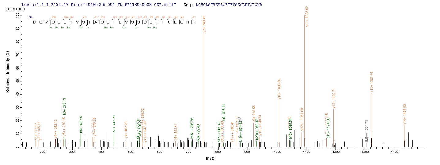 Based on the SEQUEST from database of E.coli host and target protein, the LC-MS/MS Analysis result of CSB-EP361746EZX could indicate that this peptide derived from E.coli-expressed Pseudomonas aeruginosa (strain ATCC 15692 / DSM 22644 / CIP 104116 / JCM 14847 / LMG) plcH.