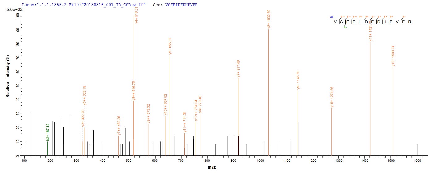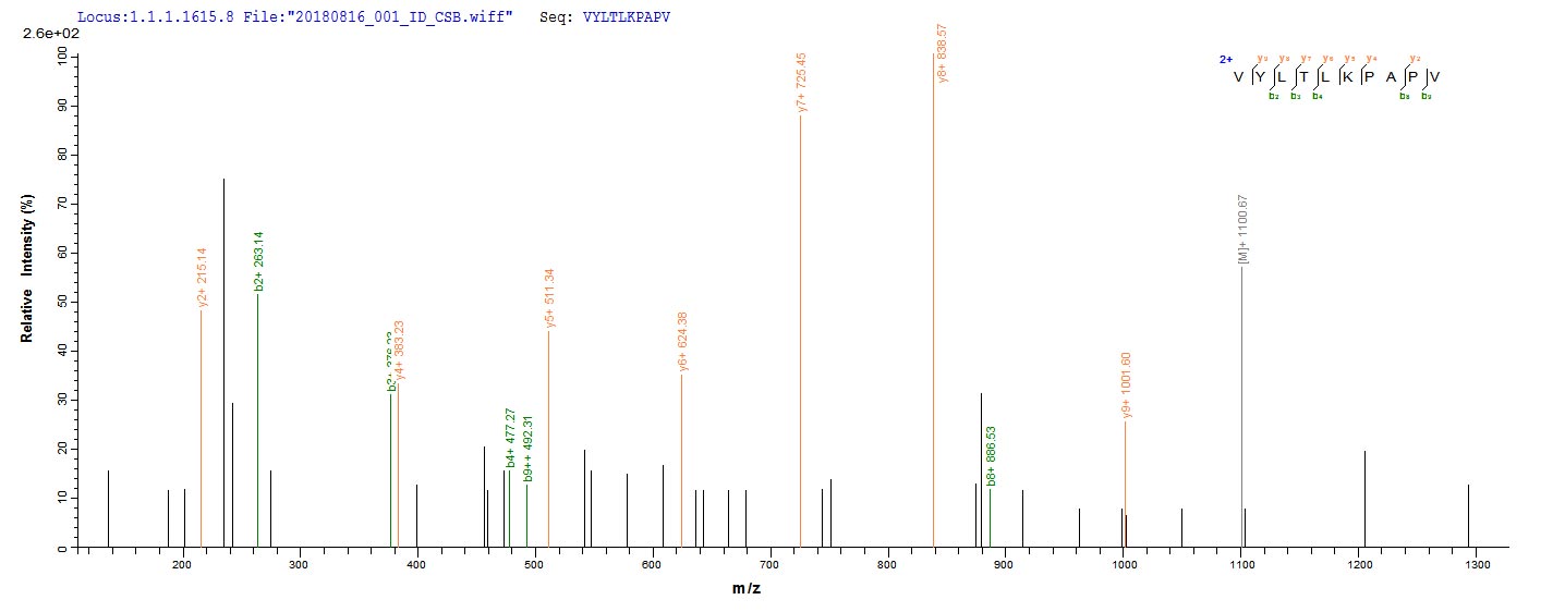 Based on the SEQUEST from database of E.coli host and target protein, the LC-MS/MS Analysis result of CSB-EP409457PZL could indicate that this peptide derived from E.coli-expressed Pseudomonas aeruginosa (strain PA7) lpxC.