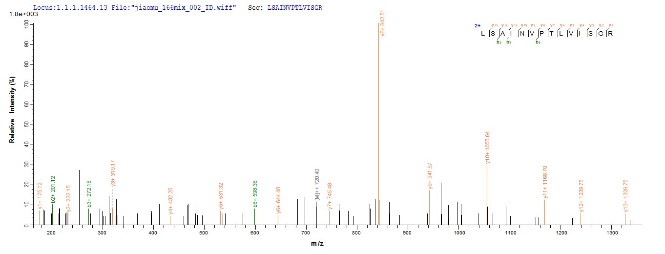 Based on the SEQUEST from database of E.coli host and target protein, the LC-MS/MS Analysis result of CSB-EP748477PHAE could indicate that this peptide derived from E.coli-expressed Pseudomonas azotoformans laaA.