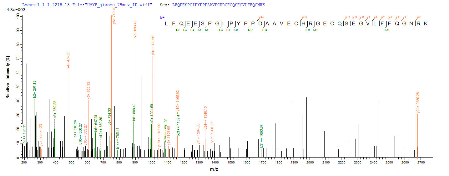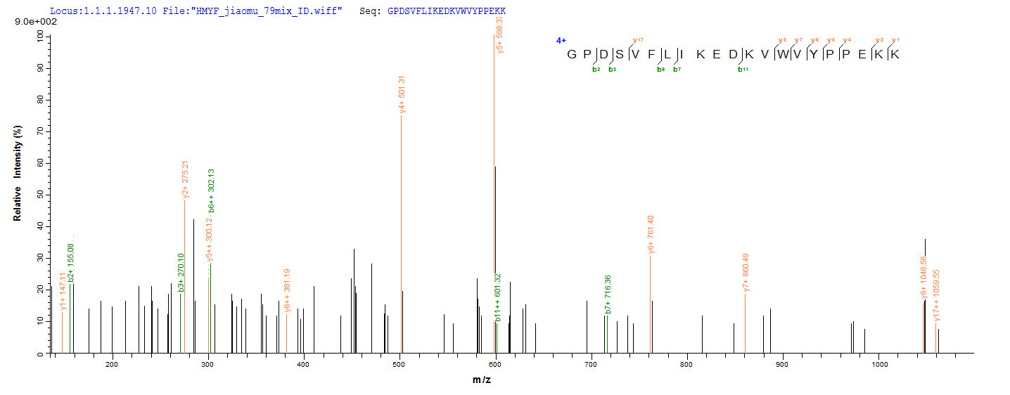 Based on the SEQUEST from database of E.coli host and target protein, the LC-MS/MS Analysis result of CSB-EP010723RA could indicate that this peptide derived from E.coli-expressed Rattus norvegicus (Rat) Hpx.