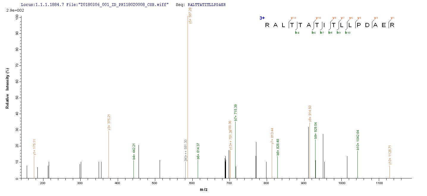 Based on the SEQUEST from database of E.coli host and target protein, the LC-MS/MS Analysis result of CSB-EP542165ROH could indicate that this peptide derived from E.coli-expressed Rotavirus A (strain RVA/Human/United Kingdom/ST3/1975/G4P2A[6]) (RV-A) (Rotavirus A (strain St. Thomas 3)) N/A.