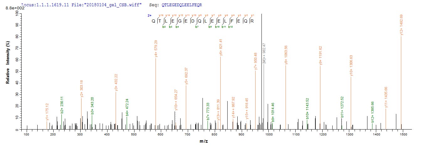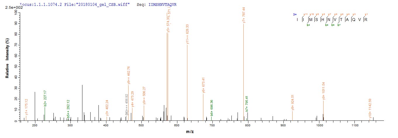 Based on the SEQUEST from database of E.coli host and target protein, the LC-MS/MS Analysis result of CSB-EP350910SUL could indicate that this peptide derived from E.coli-expressed Staphylococcus aureus (strain MW2) mecA.