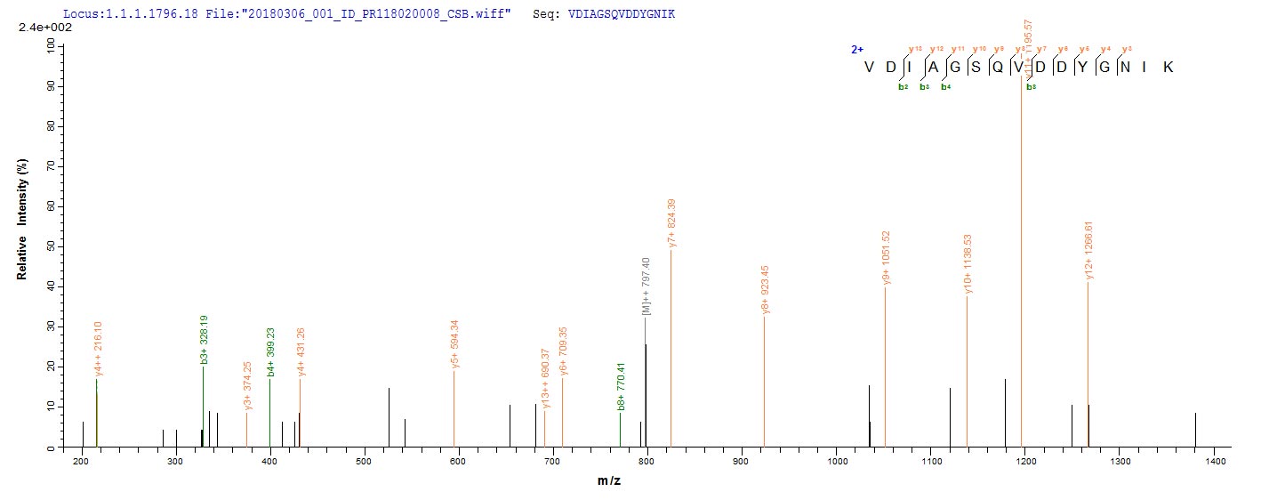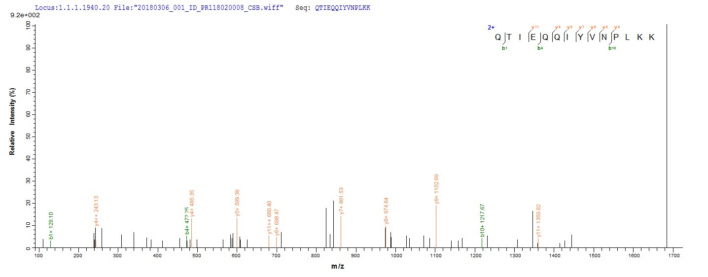 Based on the SEQUEST from database of E.coli host and target protein, the LC-MS/MS Analysis result of CSB-EP846305SKX could indicate that this peptide derived from E.coli-expressed Staphylococcus aureus (strain Mu50 / ATCC 700699) sdrE.