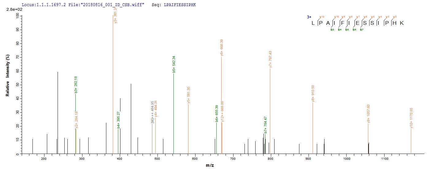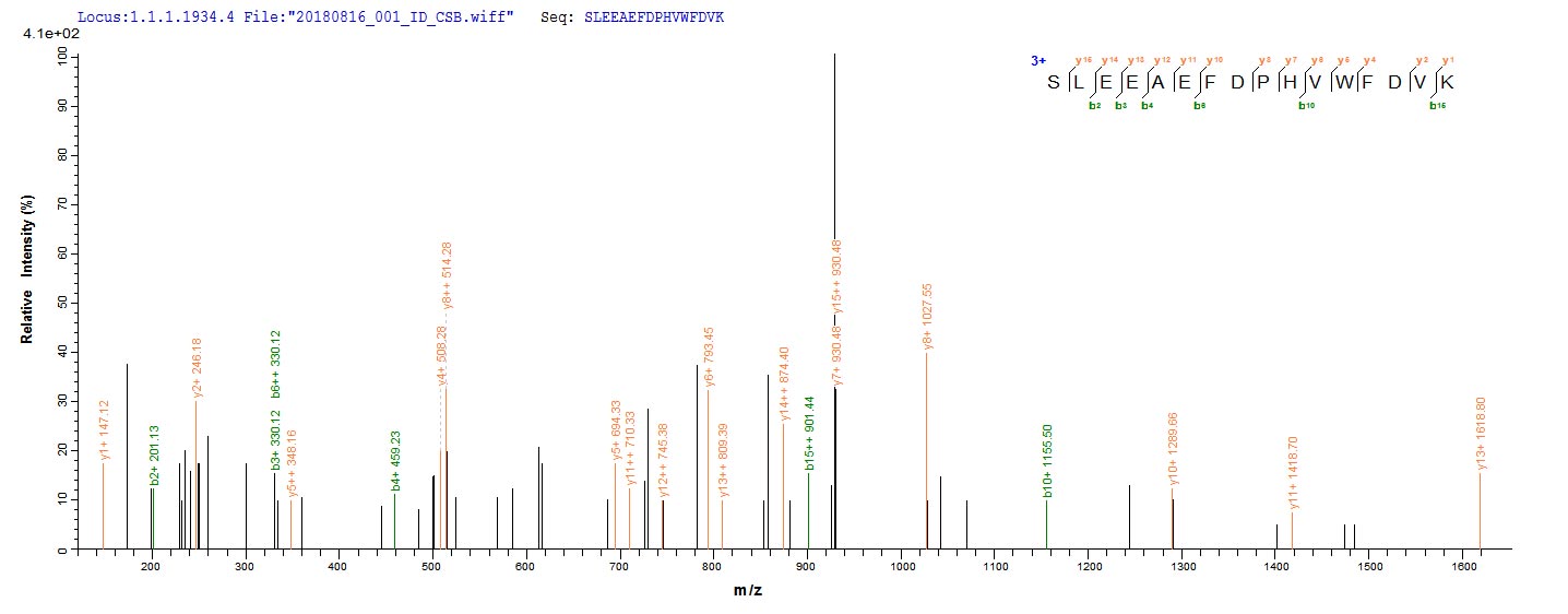 Based on the SEQUEST from database of E.coli host and target protein, the LC-MS/MS Analysis result of CSB-EP309098TPR could indicate that this peptide derived from E.coli-expressed Treponema pallidum (strain Nichols) troA.