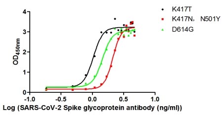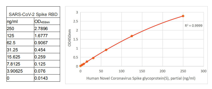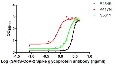 Immobilized SARS-CoV-2-S1-RBD (CSB-YP3324GMY1) at 2 μg/ml can bind SARS-CoV-2-S Antibody (CSB-MA33245A0m), the EC50 is 32.59 to 39.33 ng/mL.