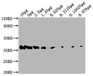 Positive WB detected in: Hela whole cell lysate at 10μg, 5μg, 2.5μg, 1.25μg, 0.625μg, 0.3125μg, 0.15625μg, 0.078μg