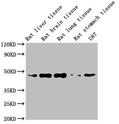 Positive WB detected in: Rat liver tissue, Rat brain tissue, Rat lung tissue, Rat stomach tissue, U87 whole cell lysate