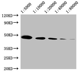 ACTB antibody at 1:5000, 1:10000, 1:20000, 1:40000, 1:80000