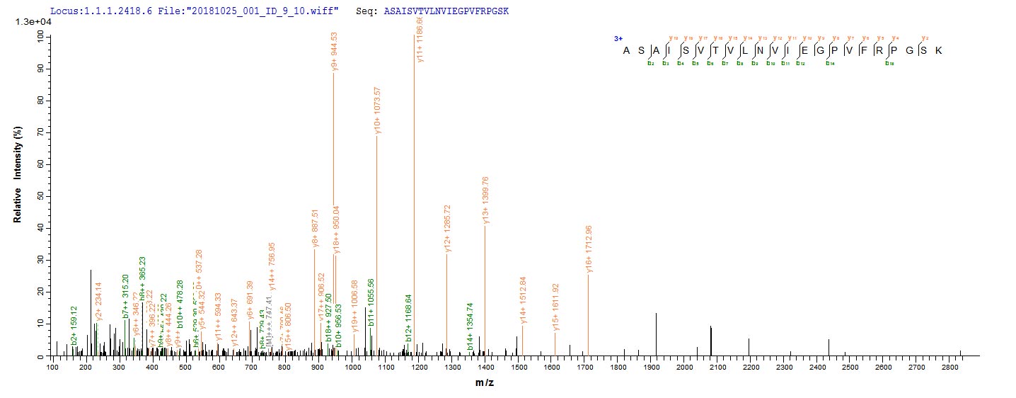 Based on the SEQUEST from database of E.coli host and target protein, the LC-MS/MS Analysis result of CSB-CF861938HU could indicate that this peptide derived from E.coli-expressed Homo sapiens(Human) DSG1.