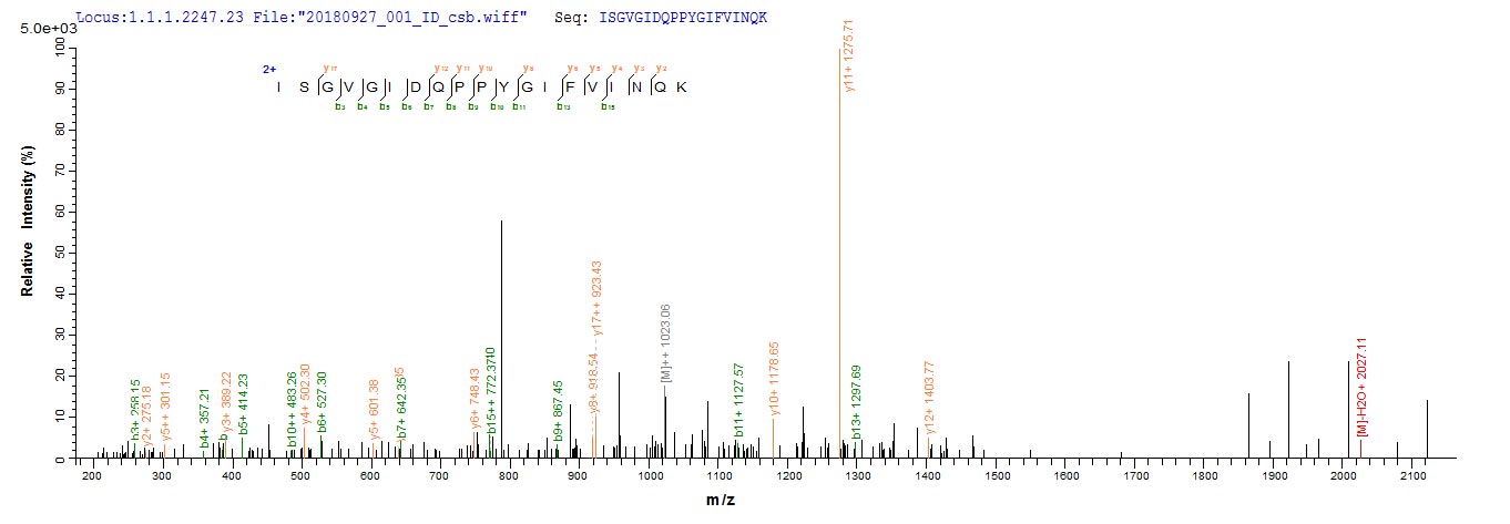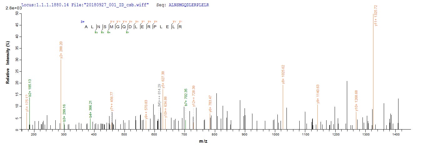 Based on the SEQUEST from database of E.coli host and target protein, the LC-MS/MS Analysis result of CSB-CF861938HUb3 could indicate that this peptide derived from E.coli-expressed Homo sapiens(Human) DSG1.