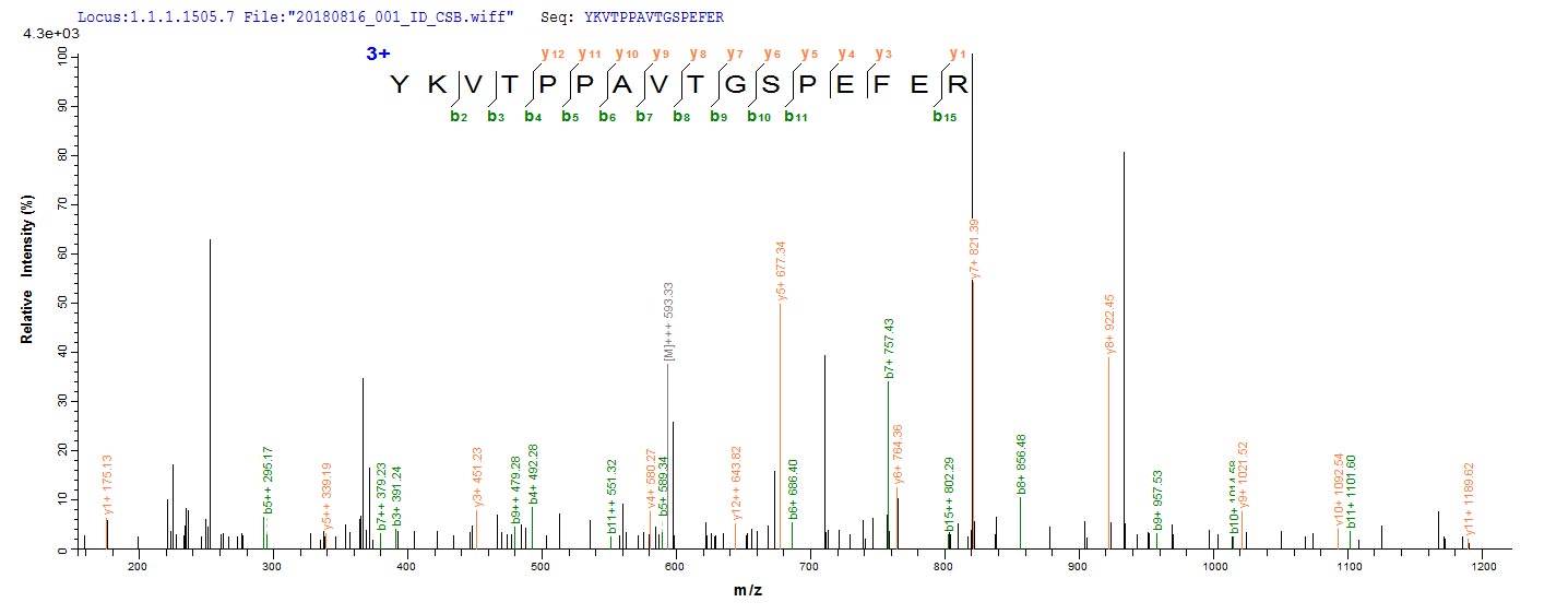 Based on the SEQUEST from database of E.coli host and target protein, the LC-MS/MS Analysis result of CSB-CF013792HU could indicate that this peptide derived from E.coli-expressed Recombinant Human Microsomal glutathione S-transferase 2(MGST2) MGST2.