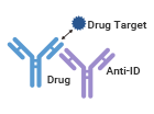抗獨特型 (Anti-idiotype) 抗體是一種能夠特異性識別并結合另一抗體獨特位 (Idiotype) 的抗體,在治療性抗體藥物開發過程中有著非常廣泛的應用。由于抗獨特型抗體與抗藥抗體(Anti-drug antibody, ADA)之間的相似性,抗獨特型抗體在免疫原性(Immunogenicity)分析中可作為陽性對照用于抗藥物抗體總量的測定。另外,在抗體藥的藥代動力學(PK)和藥效學(PD)分析中,抗獨特型抗體可用于檢測血液中抗體藥物的含量(游離型、結合型和總量)。